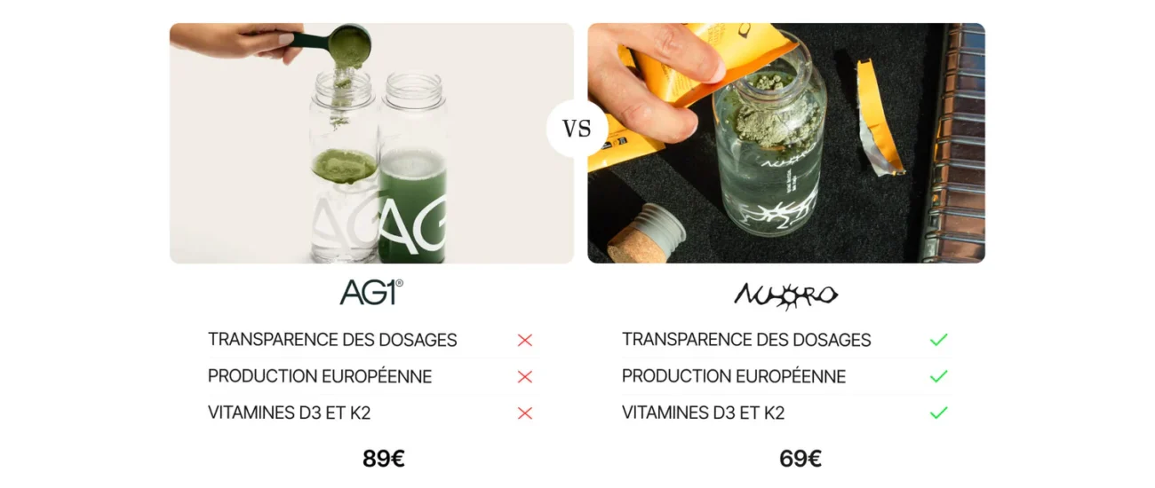 For those who value simplicity and a well-established brand, AG1 remains a solid option. But NUORO, with its transparency and commitment, offers a new and authentic vision of wellness.